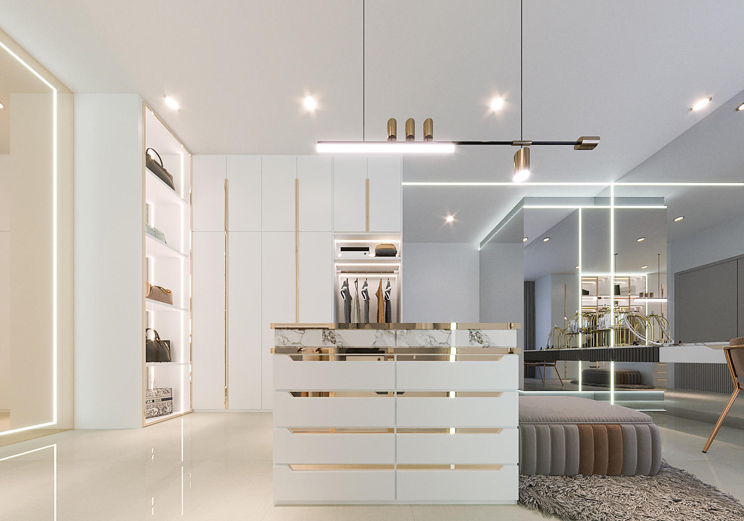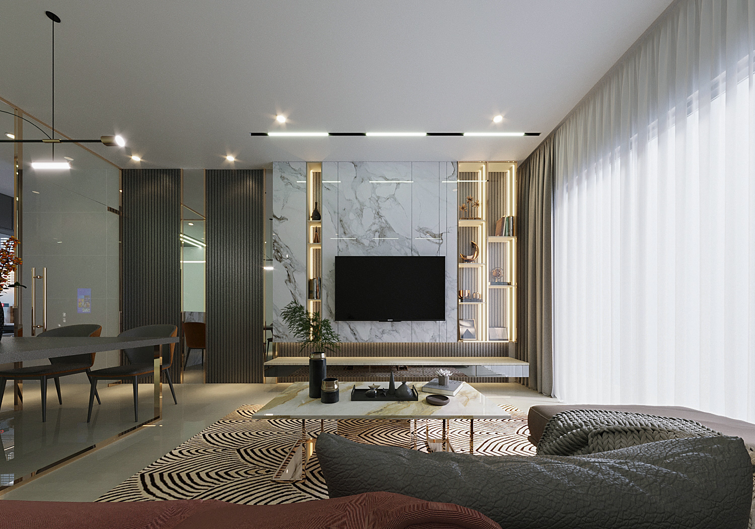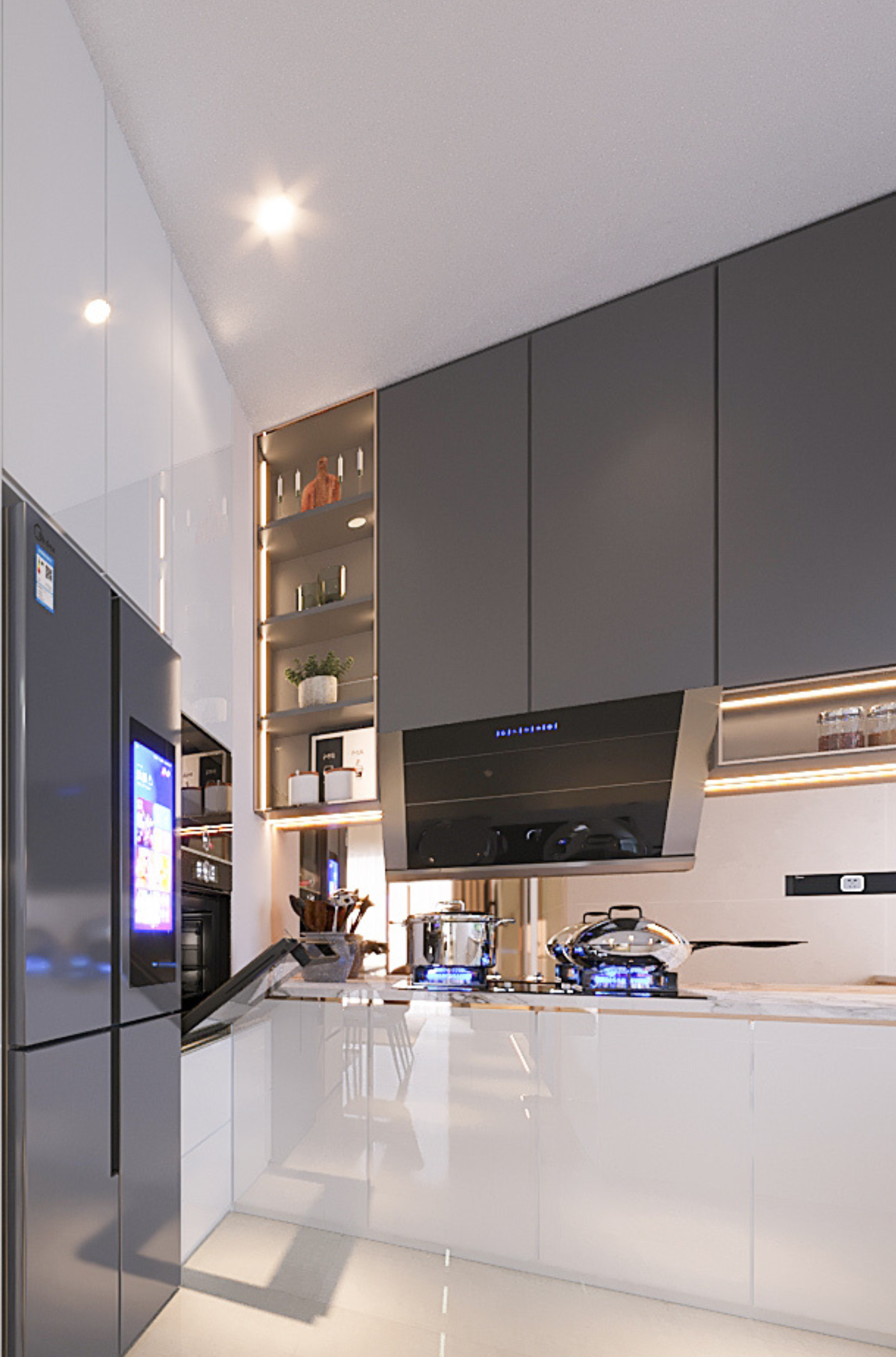 All the materials and textures used in the interior design combine to create the overall atmosphere soft and calm. Each product is cleverly concealed with high functionality, which is thoughtful. A comfortable corner sofa that combines living room and dining table without wasting a bit of space, a highly functional and beautiful kitchen, combined with many details, not only shows a understated luxurious interior, but also brings a lot of convenience and functionality . This is undoubtedly the interior design that can achieve the comfort, convenience and happiness of customers living in.